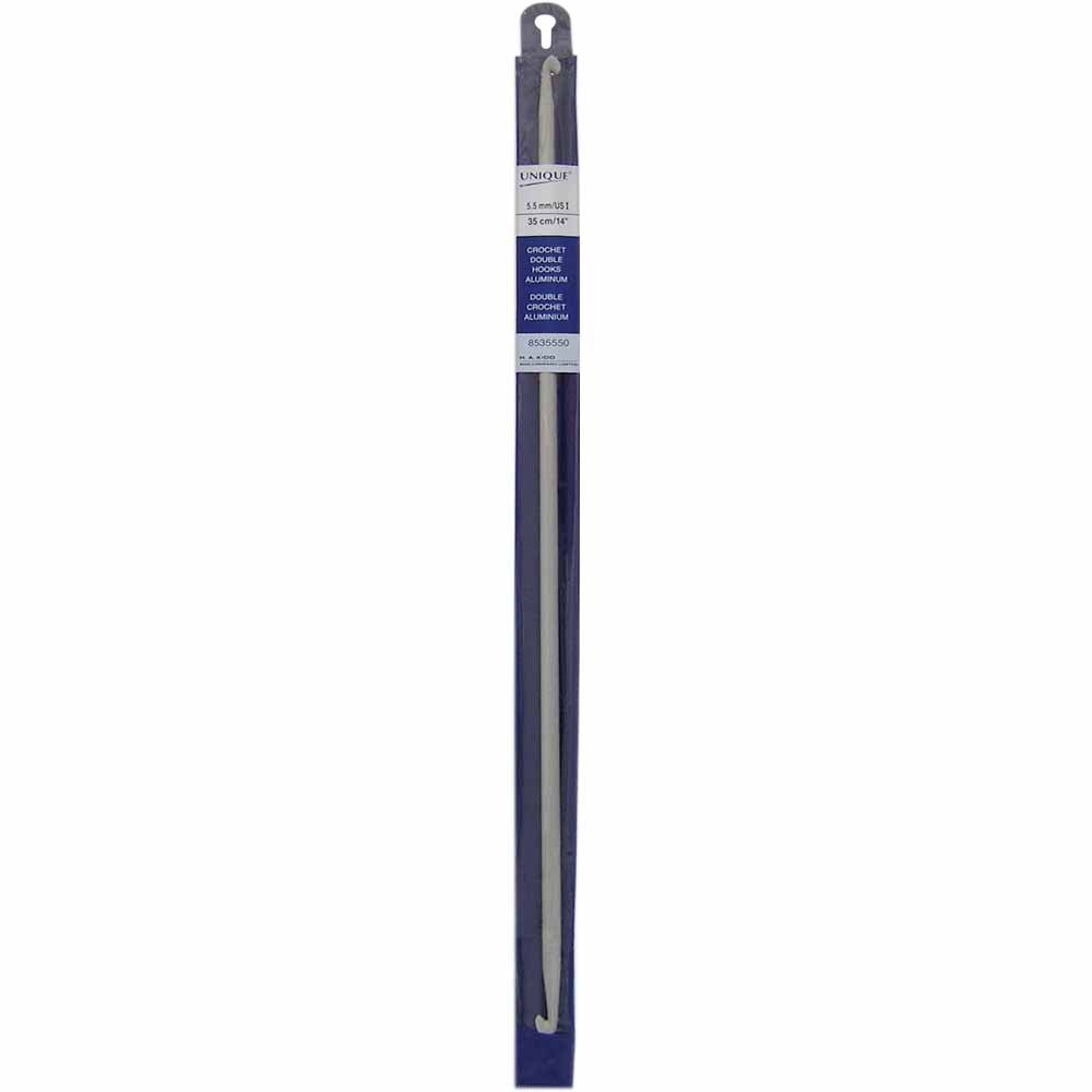 UNIQUE Crochet Double‑Ended Tunisian/Afghan Hook, 35 cm – 5.5 mm (US I-9), Aluminum