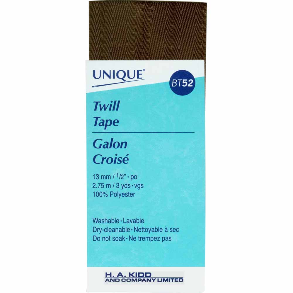 Flat woven twill tape with minimal stretch for stabilizing seams, waistlines and button plackets. This 12 mm × 2.75 m length in black also works for ties, drawstrings and strap reinforcements. Durable construction stands up to repeated laundering and pressing. Use in apparel, accessories and home projects where a firm, stable tape is required. Designed for everyday sewing and craft use, it offers dependable performance and a clean, professional finish.